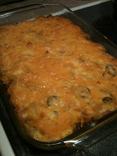 On top of the Bisquick mixture, in this order: taco meat, sliced tomatoes, onions, bell peppers, jalapenos, sour cream mixture, and end with the remaining shredded cheese. Bake for 35-45 minutes until golden. Enjoy!